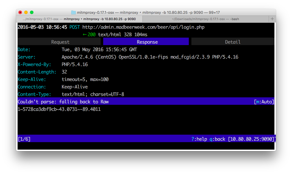 After doing a little bit of googling, I came across this incredibly helpful article explaining step-by-step exactly what I wanted to do. Next thing I know, I had a proxy running on my laptop, my phone’s internet traffic streaming through that proxy, and I had access to every HTTP request the phone (and thus, the app) made. It was almost too easy.