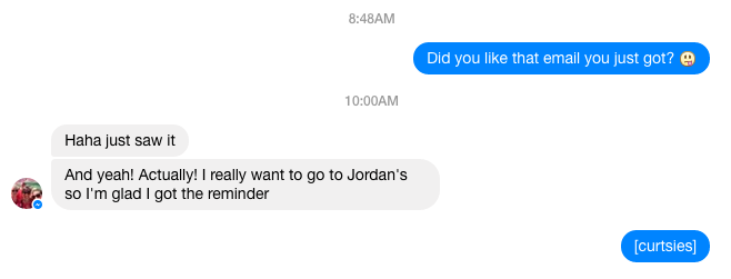 After wrestling with MailGun for awhile, SendGrid won out in terms of simplicity. I had test emails out within minutes, and all I had to do then was write a little server code to compile the list, do some basic HTML formatting, and that’s one more feature to add to the list. I thought I was just doing this for myself, but I was instantly validated by this exchange: